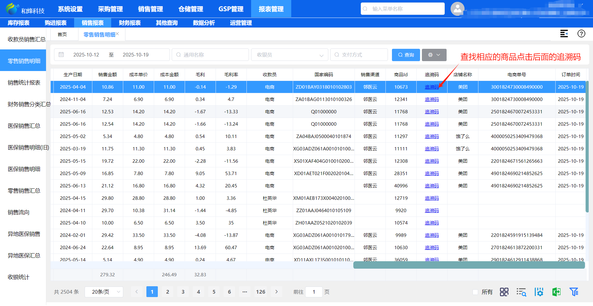 1.打开菜单【报表管理】→【销售报表】→【零售销售明细】,进入“零售销售明细报表”界面。